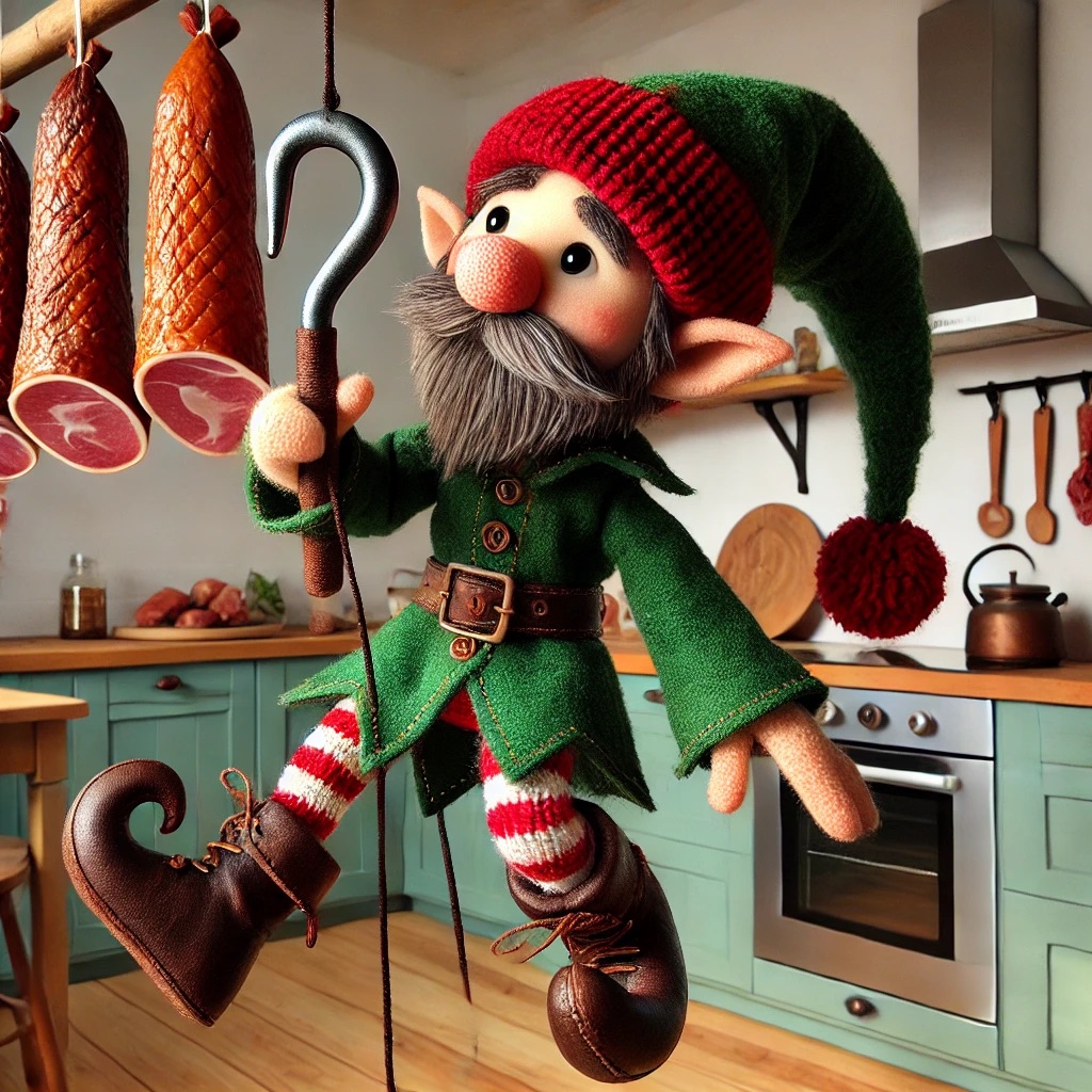 Ce lutin est un spécialiste des saucisses. Il grimpe jusqu’aux fumoirs où elles sont suspendues et les vole une par une pour les dévorer.